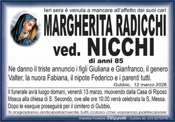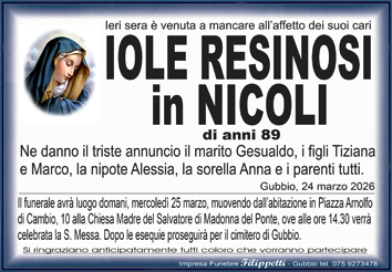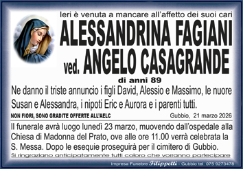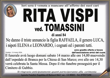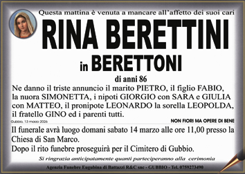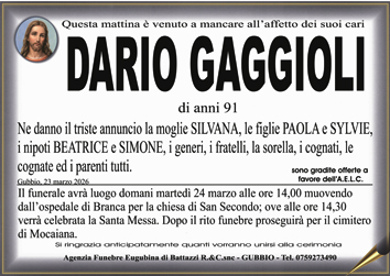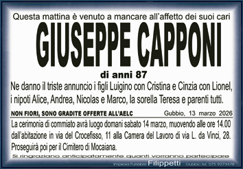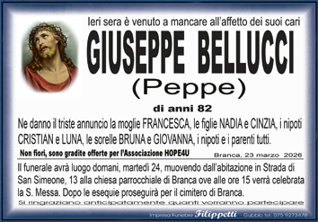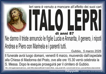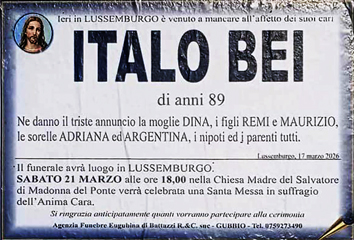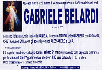 Ci sono notizie che non si vorrebbe mai dare né ricevere. Certamente la perdita di una persona cara è tra queste! Purtroppo tale argomento non può essere evitato e in tanti ci hanno chiesto di contribuire all'informazione ed è con questo spirito e con questo scopo che pubblichiamo gli avvisi riguardanti la scomparsa di Eugubini così come ci vengono trasmessi sia da Gubbio che dal Mondo, x E-mail. |