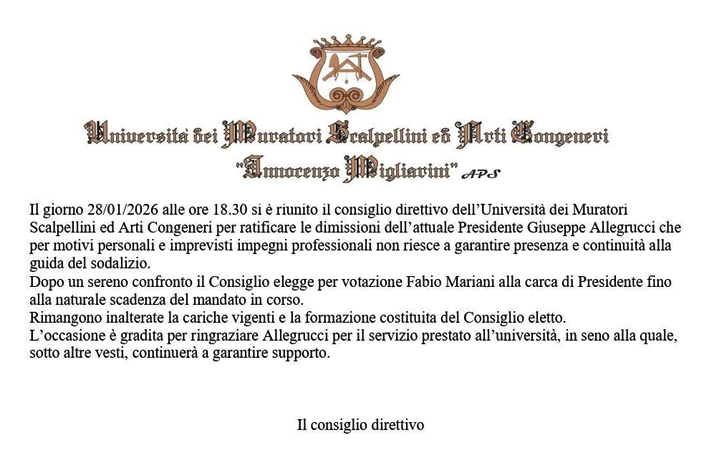 28 Gennaio 2026 - Dimissioni del Presidente Giuseppe Allegrucci. Ritorna Fabio Mariani |
